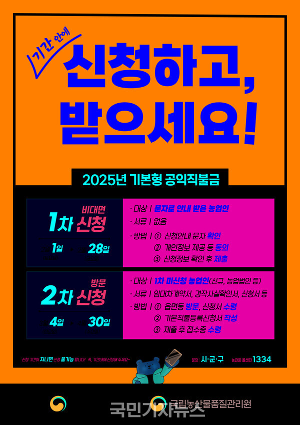 - 온라인 접수: 정부 포털 사이트나 전용 앱을 통해 공익직불금 신청서를 작성합니다. 이때 본인 인증 및 주소, 소득 관련 정보를 입력해야 합니다.