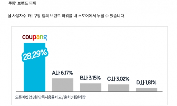 현재 온라인 쇼핑 시장에는 다양한 플랫폼이 존재하지만, 쿠팡플레이스는 쿠팡의 강력한 물류 시스템과 빠른 배달 서비스, 그리고 사용자 친화적 모바일 앱 등에서 경쟁 우위를 가지고 있습니다.