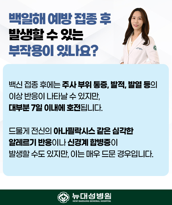 백일해 예방접종은 수십 년간의 연구와 경험을 바탕으로 안전성이 입증된 백신을 사용하고 있으나, 일부 경우 경미한 부작용이 나타날 수 있습니다.