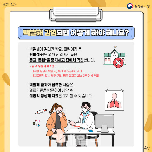 정부와 보건 당국은 백일해 감염을 줄이기 위해 정기적으로 예방접종 권장을 하고 있으며, 백일해 백신 접종을 통해 면역력을 강화함으로써 감염병 예방에 큰 효과를 보고 있습니다. 특히, 어린이와 영유아 시기에 실시하는 백일해 예방접종은 생후 몇 개월부터 시작되며, 정해진 접종 스케줄에 따라 꾸준히 진행되어야 합니다. 예방접종을 통해 백일해 발생률을 낮추고, 사회 전체의 건강을 지키는 것은 물론, 감염병 확산을 막는 중요한 예방책입니다. 부모님들은 자녀의 백일해 예방접종을 미루지 말고, 보건소나 의료 기관에서 정기적인 접종 일정을 꼭 확인해야 합니다.