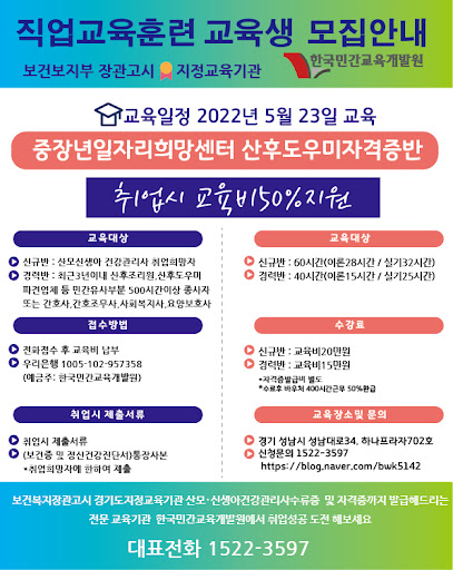 - 시험: 교육 과정을 마친 후에는 산후관리사 자격증 시험에 응시해야 합니다. 시험은 이론과 실습으로 나뉘어 진행되며, 합격 후 자격증을 취득할 수 있습니다. 일부 기관에서는 자격증 취득 후 현장 실습이 추가적으로 요구될 수 있습니다.