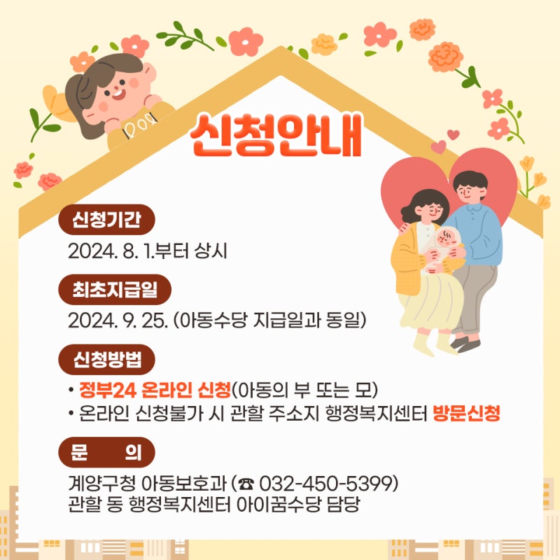 - 신청 자격: 아이꿈수당을 신청하려면 해당 아동의 부모가 한국에 거주하고 있어야 하며, 아동의 출생신고가 되어 있어야 합니다. 또한, 부모의 소득 수준이나 기타 복지 혜택 등을 고려하여 지원 여부가 결정됩니다.